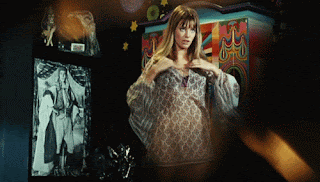 Jane Birkin in Wonderwall.  Cabinet painted by The Fool can be seen in the background.