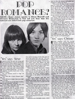 Pop Romance - Article in Rave magazine about Steve Marriott's short-lived affair with Chrissie Shrimpton - younger and prettier sister of Jean (and Mick Jagger's ex), 1967.